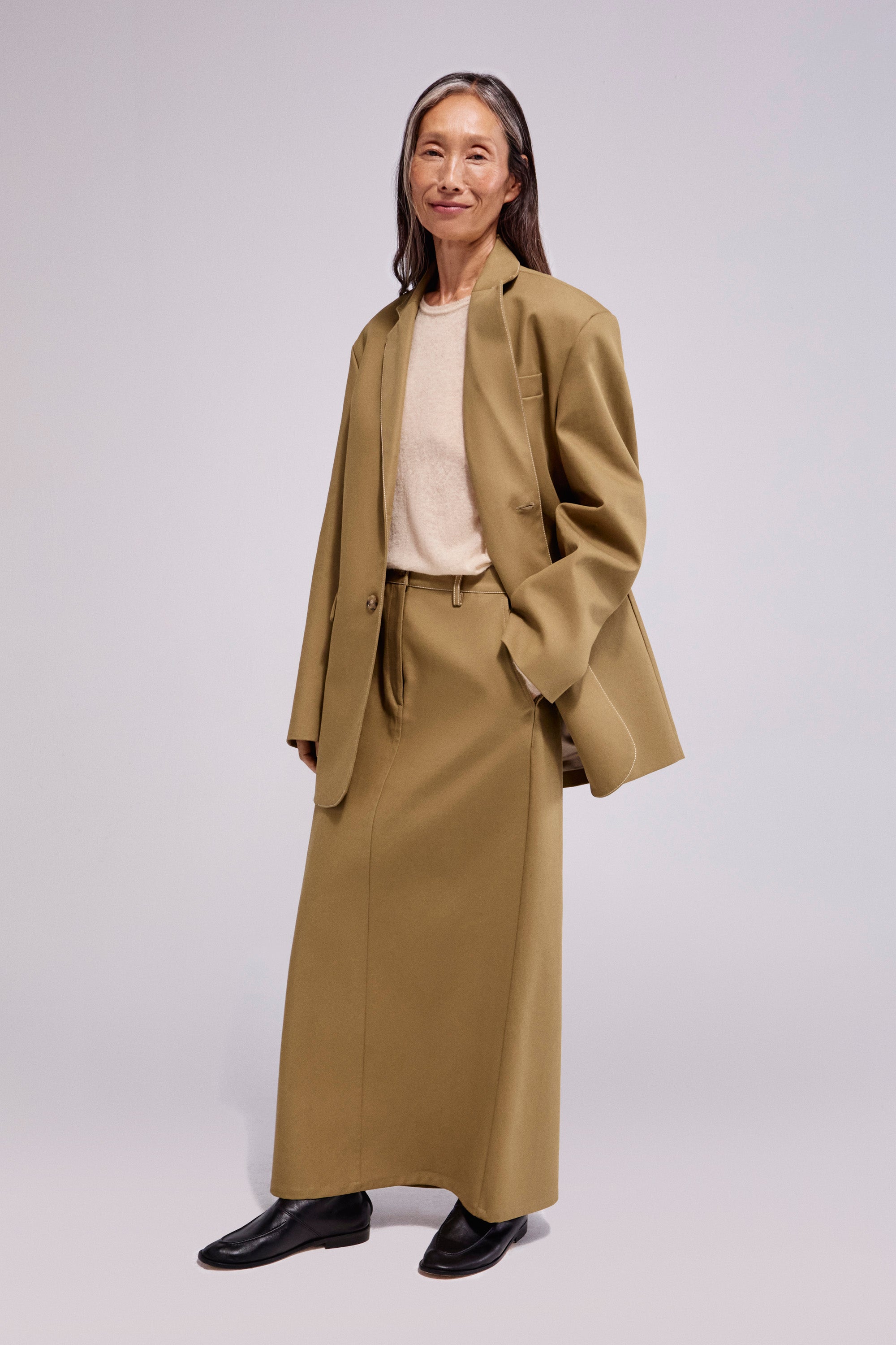 A long sleeve shirt conceived as a second skin: light, soft and embracing. Knitted in a refined blend, it offers warmth and resistance with a velvety touch that moves naturally with the body. The sleeves are finished with a subtle finger opening, adding both comfort and a distinctive detail.